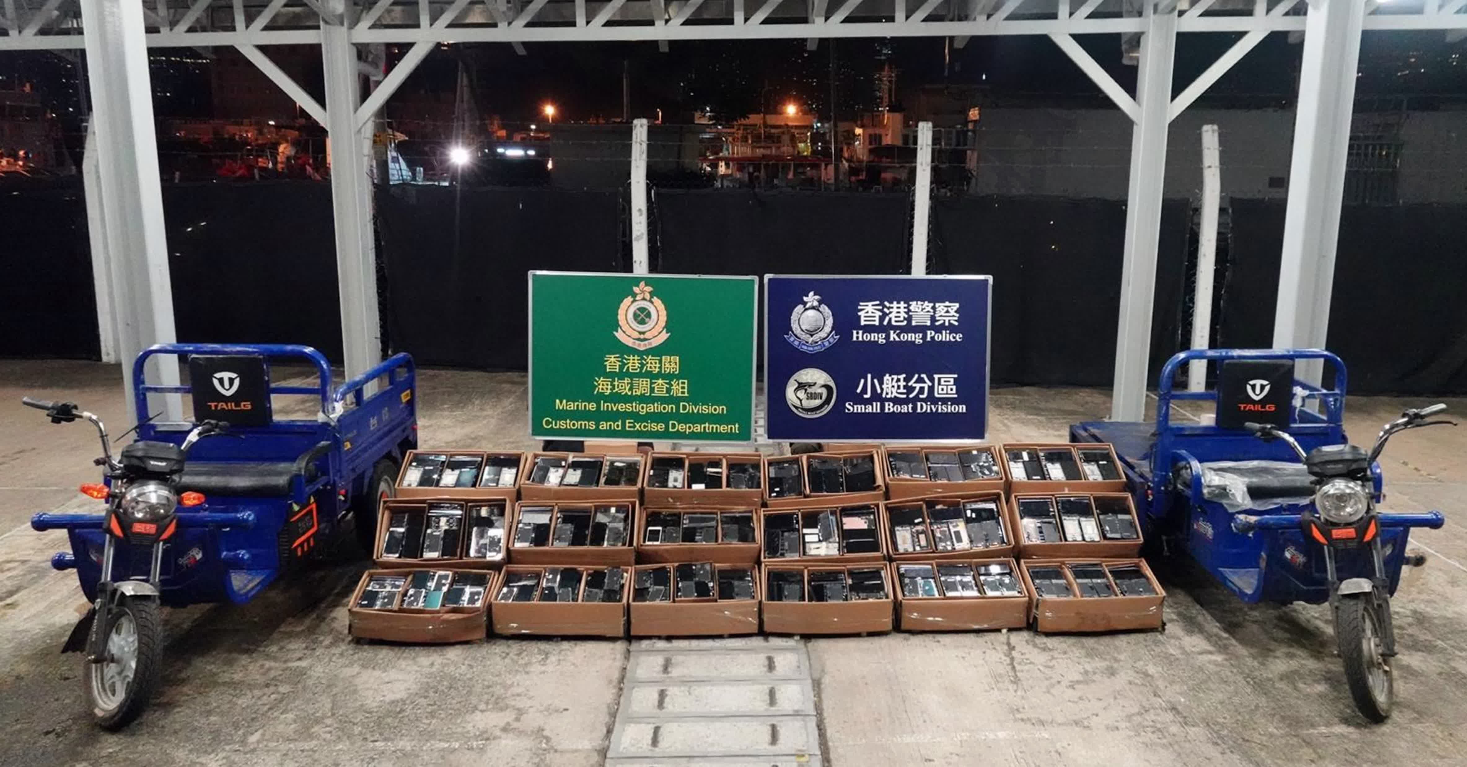 水警海關東涌聯合反走私 檢5600件手機零件扣電動三輪車