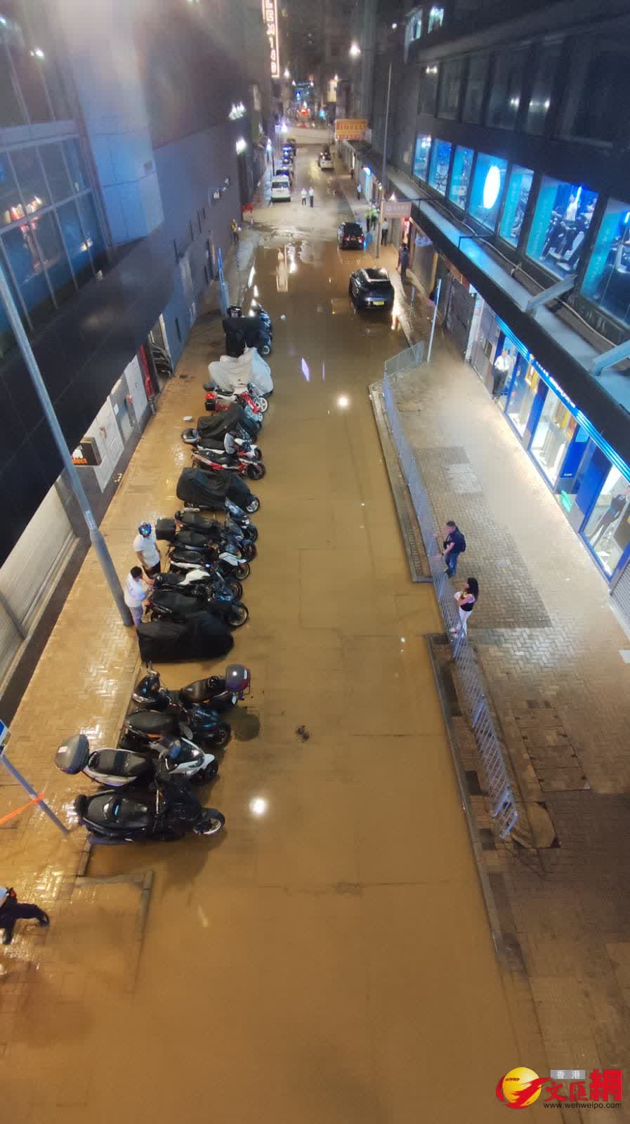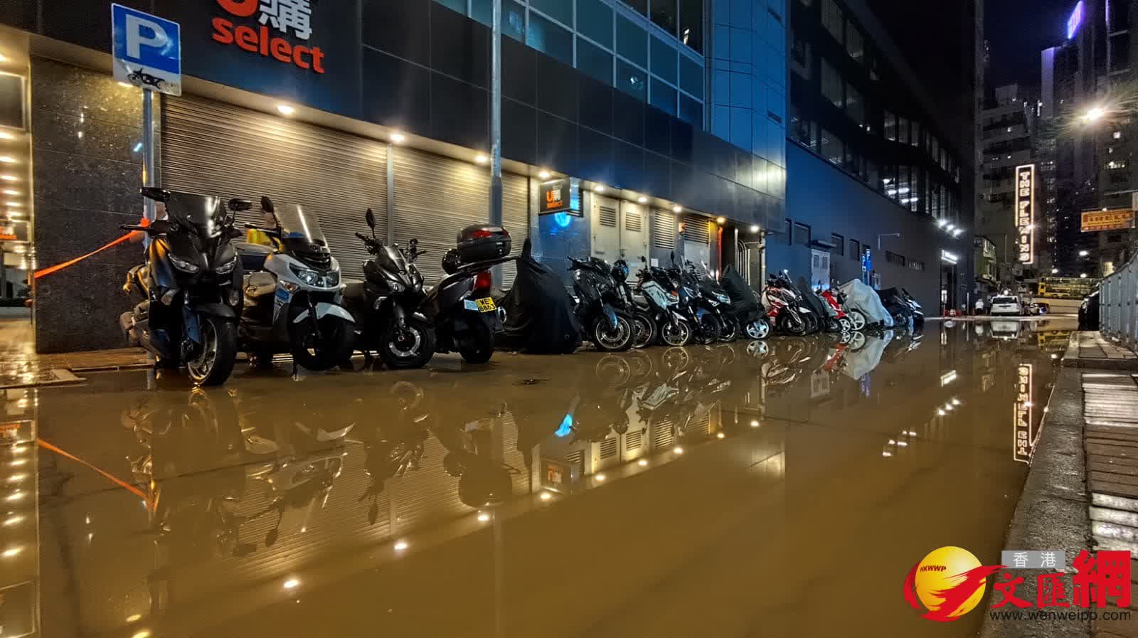 香港文匯報訊(記者 蕭景源)今日(26日)晚上約9時,警方接報指灣仔謝斐道近柯布連道有水管爆裂。由網上片段可見,現場謝斐道介乎菲林明道至柯布連道之間一段路面被湧出的黃泥水淹浸,路邊電單車泊位有近20部電單車被泥水圍困,水深一度約半呎,附近大廈停車場亦放置沙包和水閘以防泥水湧入。
