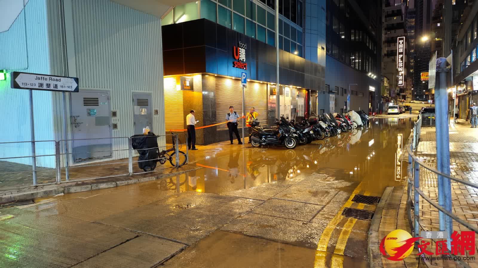 (有片)灣仔謝斐道爆鹹水管 近20部電單車一度遭泥水圍困