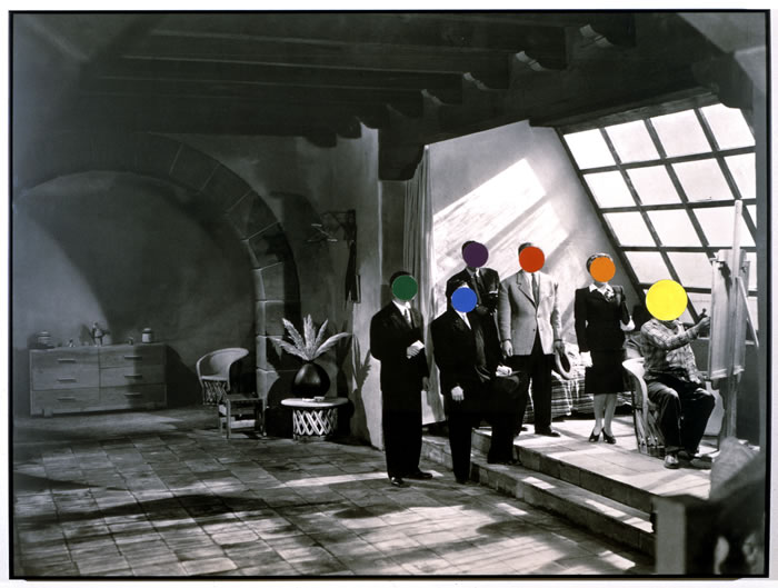 约翰 · 巴尔代萨里,《工作室》,1987,黑白摄影及乙烯基颜料,121.9 × 160 cm。© 1987 - 2025 约翰 · 巴尔代萨里家族基金会 , 图片由约翰 · 巴尔代萨里遗产提供;施布特玛格画廊;私人收藏。