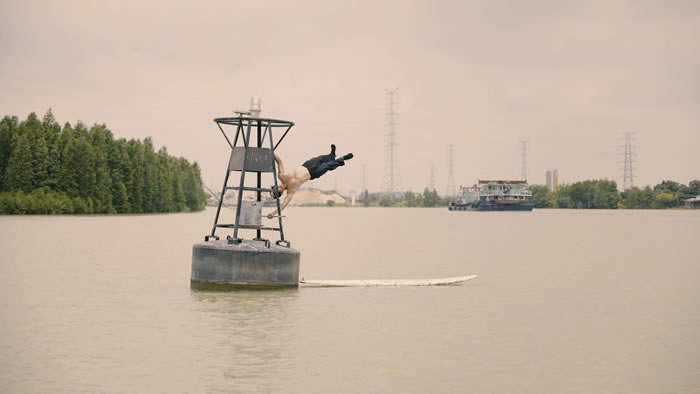 船长是一个酷爱健身的达人,“人体旗帜”是其中一项热爱的运动。与其他健身者不同的是,船长做的“人体旗帜”和他几十年开船的职业生涯有着某种奇妙的关联,看起来很艰难的肉身的旗帜和概念上航行的旗帜,以及航行中不可避开的“风”都互相交织在一起。