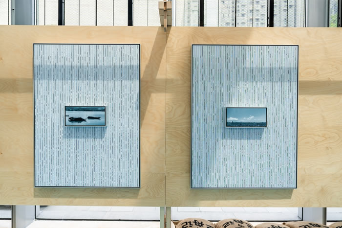从图像中提取色彩及其对应的十六进制代码,并将其与去色处理后的原始图像并置重组。这一过程重构了图像与颜色的语境,质疑了图像与真实的关系,并试图揭示数字技术如何欺骗人类的视觉系统。同时,作品中陆地与水面的摄影以四分之一构图和比例呈现,暗示了一种对立和不稳定的关系。