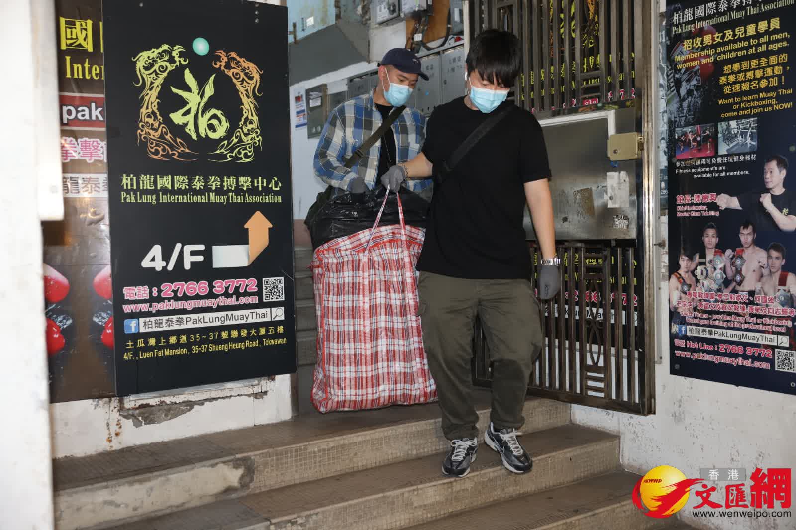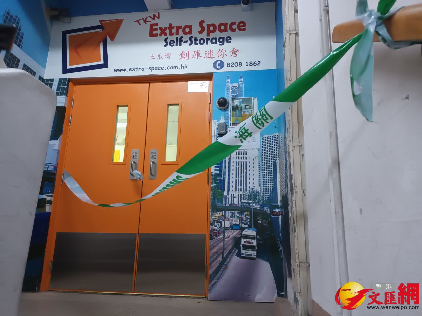 人員晚上在土瓜灣上鄉道35至37號聯發大廈迷你倉檢走一批證物調查。香港文匯報記者鄧偉明攝