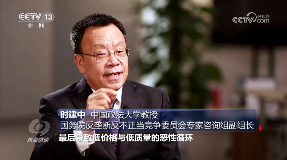 时建中:“‘内卷式’竞争最主要的表现形式就是低价竞争,低价竞争一旦失序必然导致低质量的竞争,最后导致低价格与低质量的恶性循环,会恶化创新发展的环境,也不利于高质量发展。不要简单地认为价格越低,对消费者越好,如果低价买的是劣质产品,其实对消费者权益是一种损害。”
