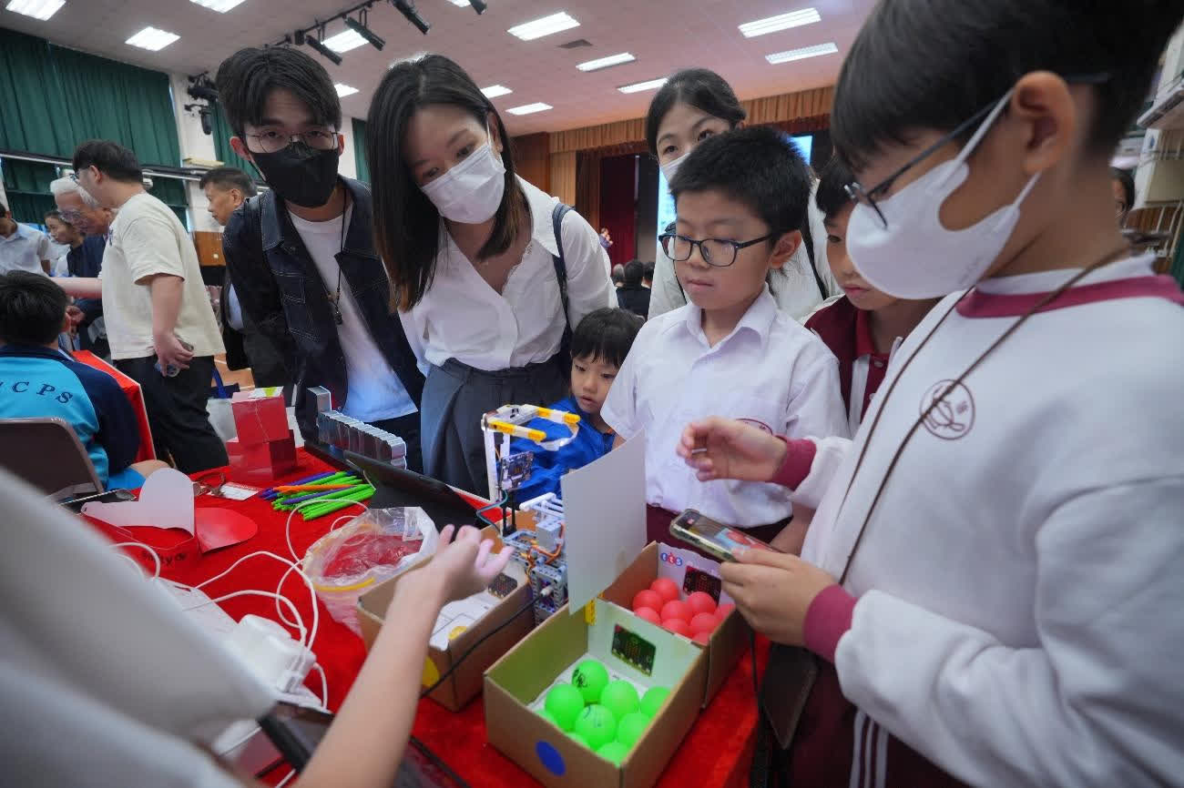 同場亦有多間中小學展示師生應用 AI 技術的創新作品。中華基督教會協和小學展示學生如何用 Huskeylens AI 相機辨識水果優劣,並設計自動化流程,將不同品質的水果放進分類箱子。和富慈善基金李宗德小學分享視覺化人工智能課程如何讓小學生趣味性地了解人工智能的原理。樂善堂梁銶琚學校(分校)展示學生如何用 AI 系統 Huskeylens辨識場景動物。羅定邦中學分享了用 Python 撰寫電腦程式,連接 Deepseek 的 API,生成選擇題和短答題,協助學生學習。樂善堂余近卿中學展示了「AI 龍舟划槳姿勢」作品,融合人工智能技術,培研學生以數據分析和動作識別提升運動表現。世界龍岡學校劉皇發中學透過 AI 技術,將參加者的中文名字生成七言絕句,同場還有學生即席揮毫。香港教師會李興貴中學展示運用 AI 微電影創作,激發學生創造力與跨學科整合能力。培僑中學展示運用 AI 技術製作的三維打印作品。