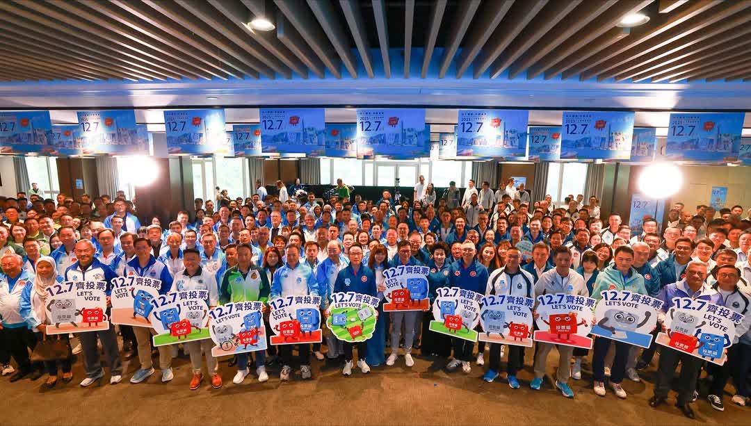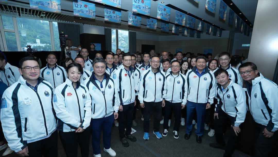 香港文匯報訊(記者 蕭景源)入境處全力支持12月7日立法會換屆選舉,今日(8日)處長郭俊峯連同使用服務人士委員會委員、青少年領袖團總監及副總監們,連同工會代表、一眾長官和同事一起參與由保安局舉辦的「保安局及紀律部隊誓師大會」,象徵着入境處全體「投入選舉 共創未來」的團結及決心!