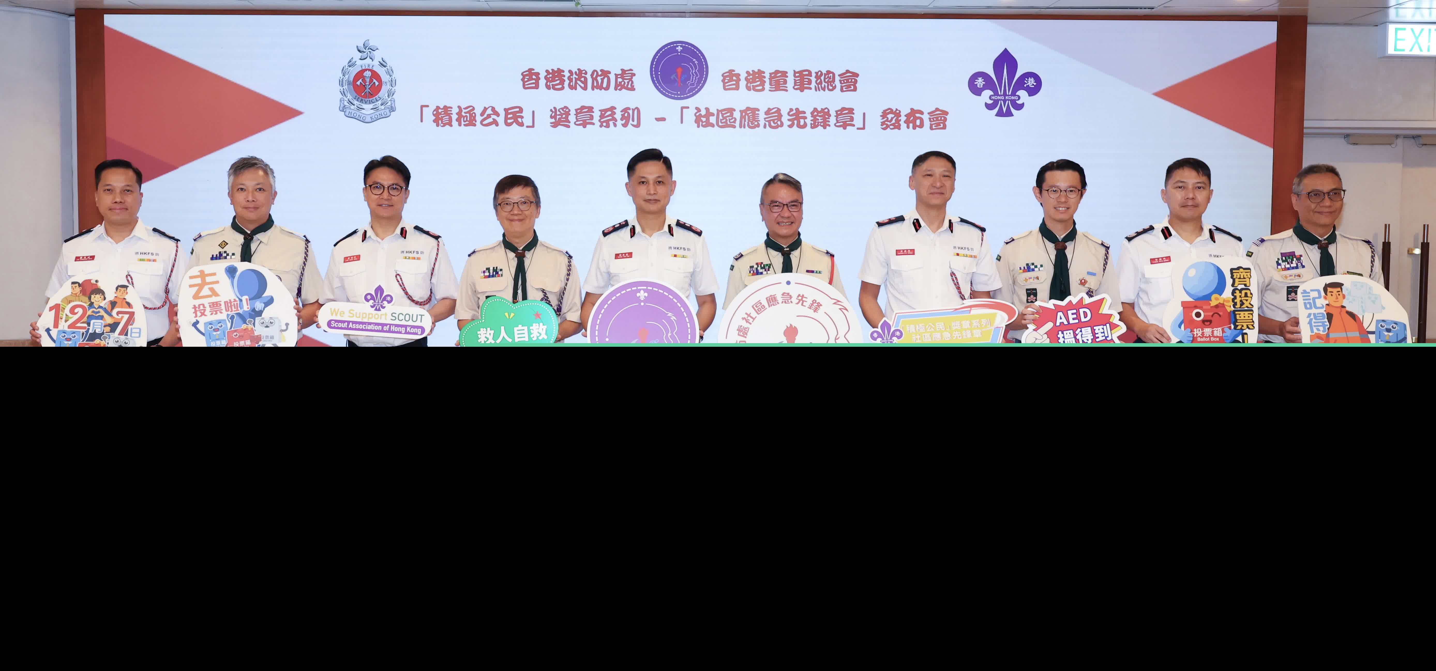 「消防處社區應急先鋒計劃」旨在向市民傳授基本的防火及應急知識,提升社會應對緊急事故的能力和信心。為鼓勵更多童軍成員積極參與,消防處針對他們接受訓練的模式進行了調整,加入更多的短片及實習環節,令應急知識、施行心肺復甦法和自動心臟除顫器使用方法等技巧更易掌握,而完成訓練的童軍成員更可在制服上佩戴「社區應急先鋒章」,以展示他們在遇上事故時承諾救人自救的決心。