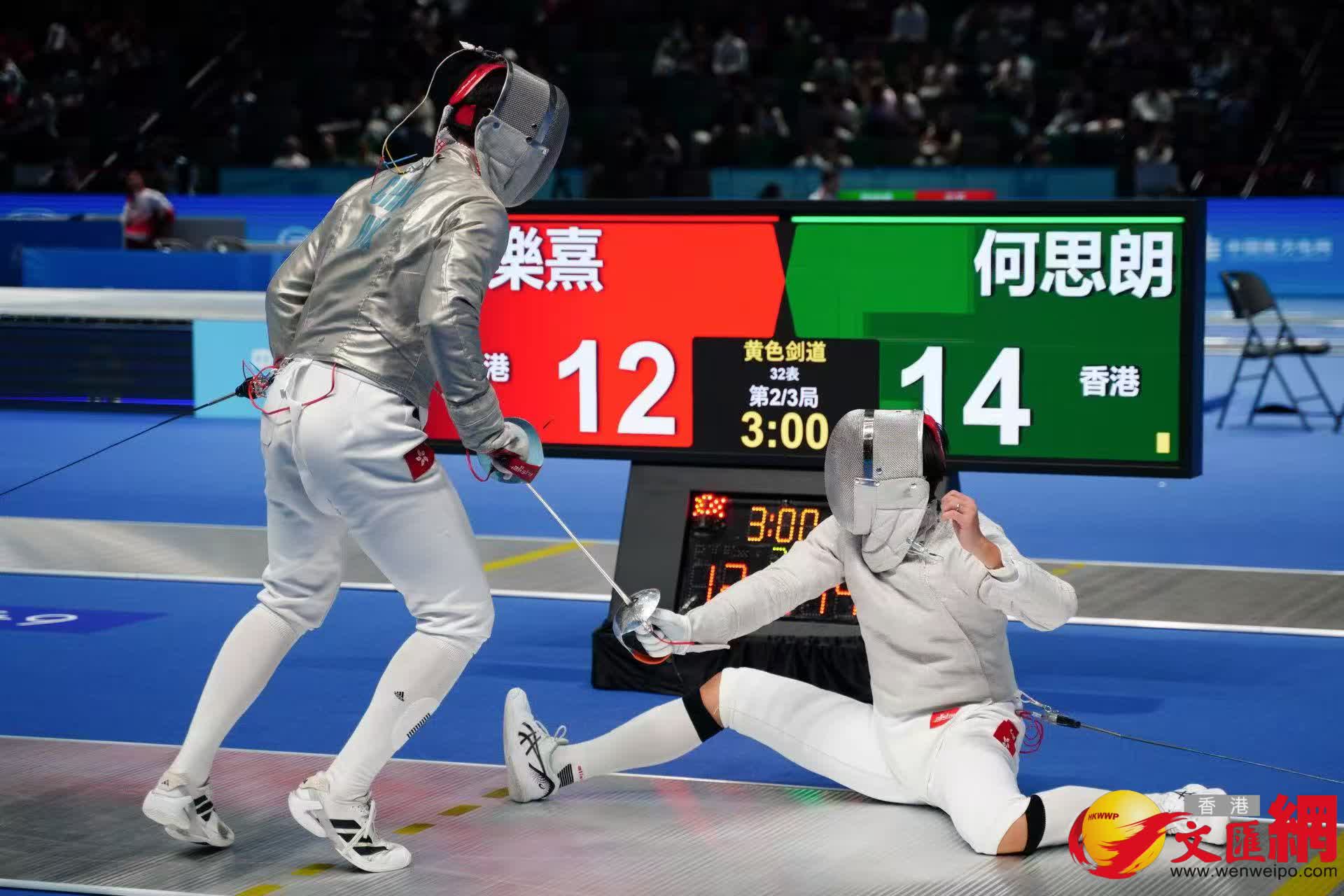 香港文匯報訊(記者 張發兒)第十五屆全國運動會男子佩劍32強上演「港隊內戰」,由陳樂熹對何思朗,雖然陳樂熹在落後9:13之下於尾段連追3分,但最終仍以12:15不敵何思朗,無緣16強。