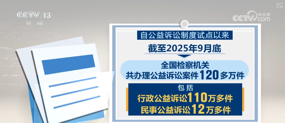 自公益诉讼制度试点以来,截至2025年9月底,全国检察机关共办理公益诉讼案件120多万件,包括行政公益诉讼110万多件、民事公益诉讼12万多件。办案领域涵盖生态环境和资源保护、食品药品安全、安全生产、反电信网络诈骗等14个领域。依法管网治网 维护网络空间安全有序