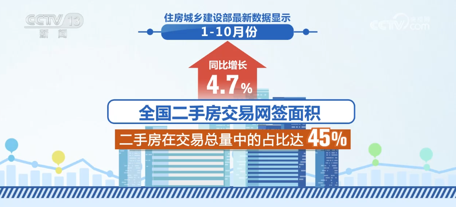 住房城乡建设部最新数据显示,1—10月份,全国二手房交易网签面积同比增长4.7%,二手房在交易总量中的占比达45%。特别是一些城市的二手房市场表现更加亮眼,上海、深圳、重庆、南京、常州、东莞等十几个城市的二手房交易网签面积同比增长超过10%。