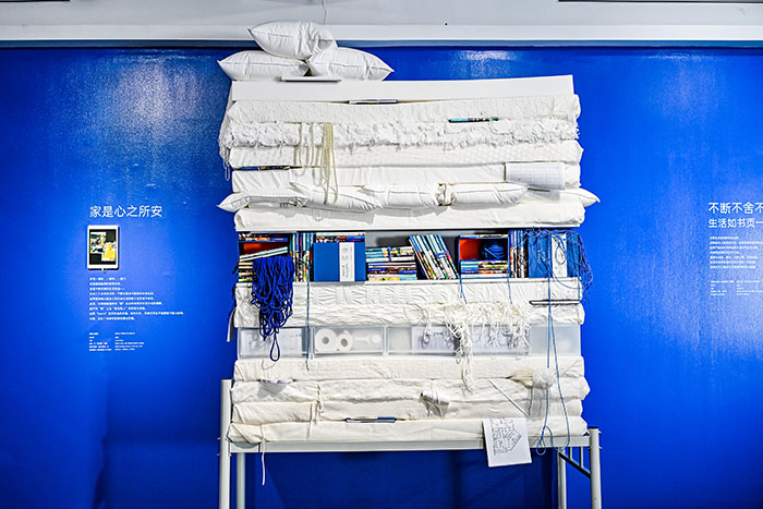 欧阳应霁以“打破边界”的跨界创作著称,在漫画、文字、装置、影像等领域自由穿梭,始终秉持“日常即艺术”的创作理念,将生活中的饮食、家居、器物转化为富有温度的艺术表达。2025年的《天天厨房》系列用玻璃钢雕塑与瓦楞纸绘画,构建出充满童趣的饮食宇宙;《家是心之所安》装置则以床褥、书籍等日常材料堆砌出“家”的意象,记录三十多年对家居与亲情的思考,二者共同诠释出“艺术源于生活,又高于生活”的深层内涵。