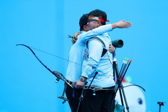第五局比赛中,孙景宣先上手只射中8环,李梦麒则打出两箭10环、一箭9环,总比分7:3战胜对手,站上最高领奖台。比赛后,李梦麒和靖教练开心地拥抱在一起,领奖路上,李梦麒仰天长啸:“我现在是最棒的!”