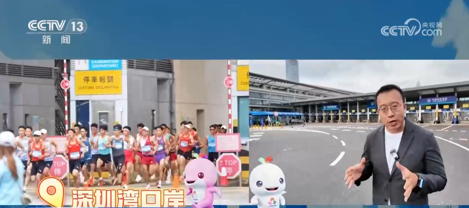 而本届全运会,大湾区深度融合再添生动实践。记者所在深圳湾口岸,参加全运会首次跨境马拉松的运动员们就是从我身后的通道跑向香港。在起点进行前置查验后,运动员们只需佩戴像我手上的这块配备有北斗定位芯片的手环后,大家就可实现无感,不停脚步地通关。
