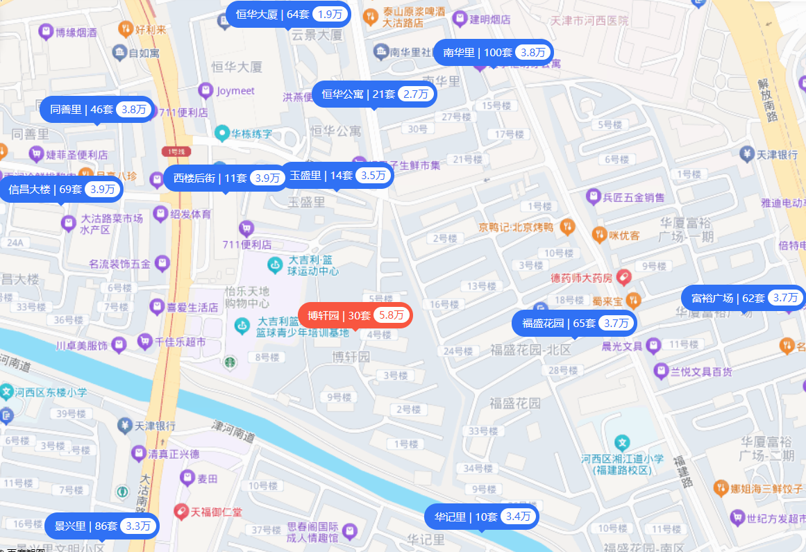 博轩园房价与周边小区对比图,图片来源于“天津365淘房”报道《天津这个小区如此扛价!背后原因竟然是……》