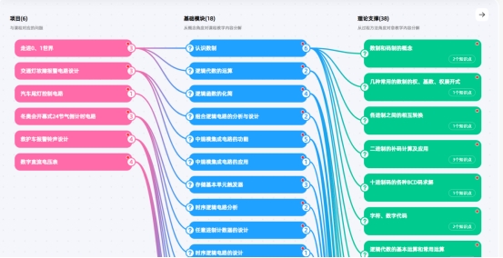 基于鄂尔多斯产业数据图谱,以及专业人才培养方案,构成AI专业图谱+项目图谱+知识图谱+能力图谱+思政图谱。其中专业图谱是依托智慧树平台,建设自动化、电气工程及其自动化和电子信息科学与技术专业人才培养的专业图谱;项目图谱:结合鄂尔多斯在能源、智能制造、智慧牧场等领域形成具有鄂尔多斯应用技术学院特色的项目图谱;课程图谱:借助AI工具及智慧树平台形成数字电子技术的知识图谱,思政图谱:将专业知识点与工匠精神、工程伦理等思政元素关联,形成课程思政图谱。采用混合式教学模式,结合智慧树,设计“课前AI导学-课中项目实践-课后思政反思”的教学流程,借助AI技术实现专业技术维度、工程素养维度、职业价值观维度的完整评价,并使用AI学情诊断技术为学生提供学习路径的个性化学习服务。