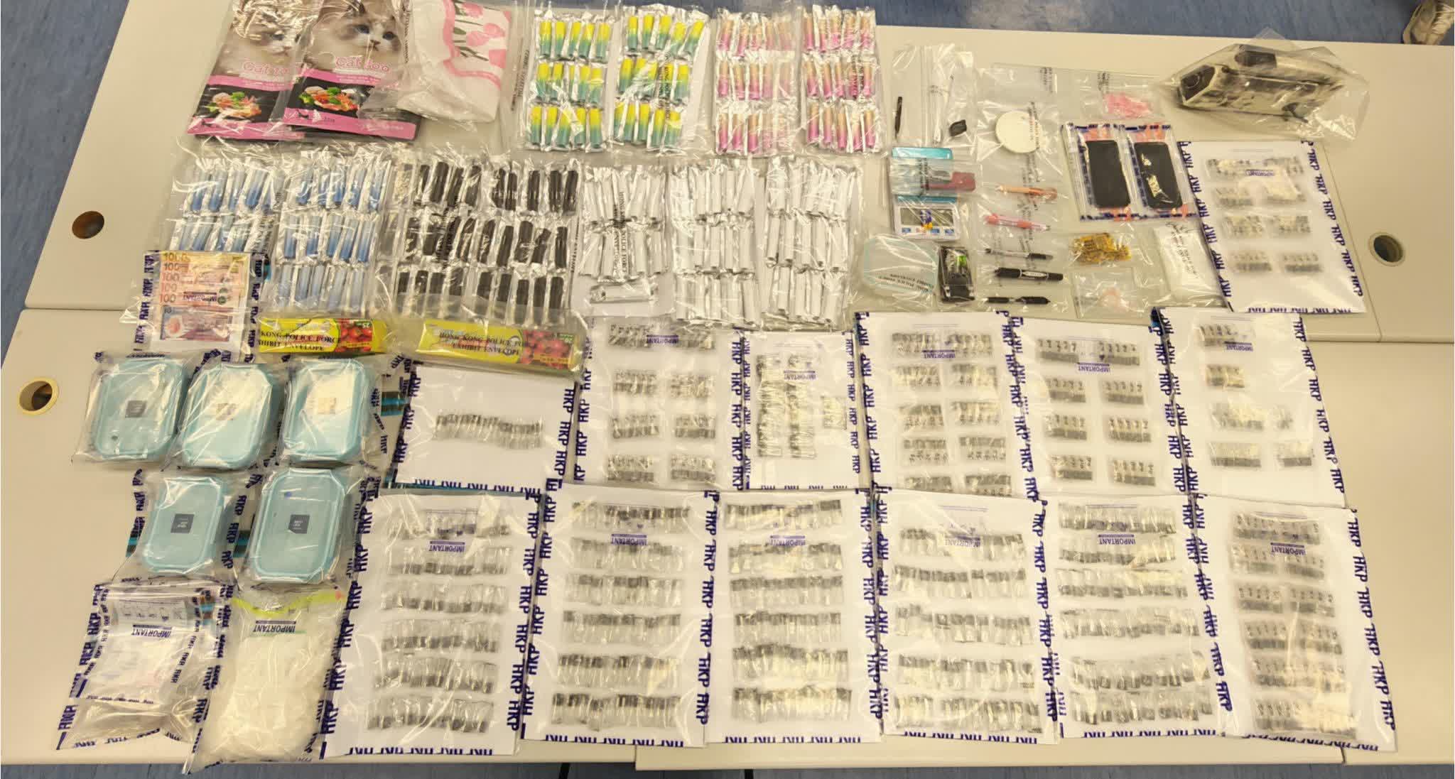 行動中,人員在該單位內檢獲約3.7公斤懷疑氯胺酮、約一公斤懷疑霹靂可卡因及575支懷疑含有依托咪酯的煙彈。行動中檢獲的毒品總市值約290萬元。