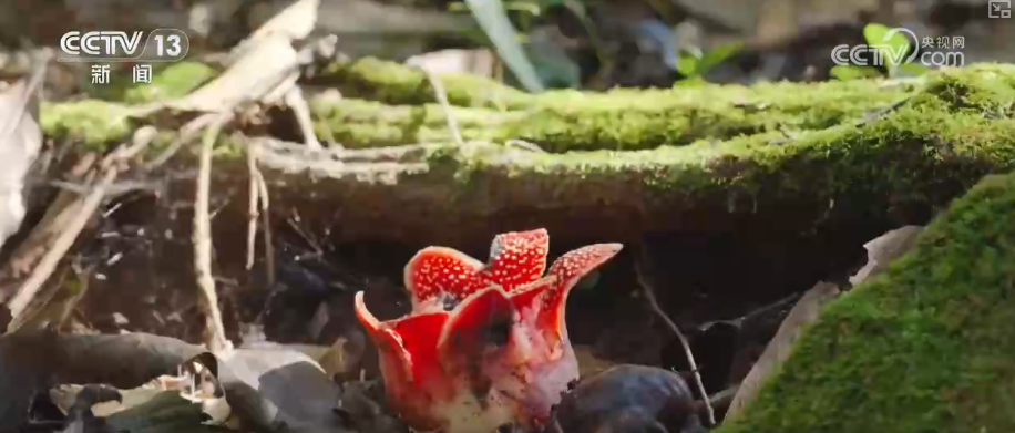 在保护区山坡至半山坡的原始雨林中,猩红色花朵零星分布于林下腐殖层,直接从宿主扁担藤的根部萌出。作为我国大花草科唯一分布的物种,寄生花无茎、无根、无叶,不具备光合作用能力,完全依赖寄生于扁担藤根部获取生长所需养分,每年仅在9月至12月繁殖期开花。因其生活史特殊、行踪隐秘,在植物学界素有“植物幽灵”之称。