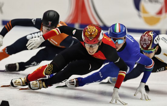 11月23日,中国队选手孙龙(前)在比赛中。新华社记者 高静 摄