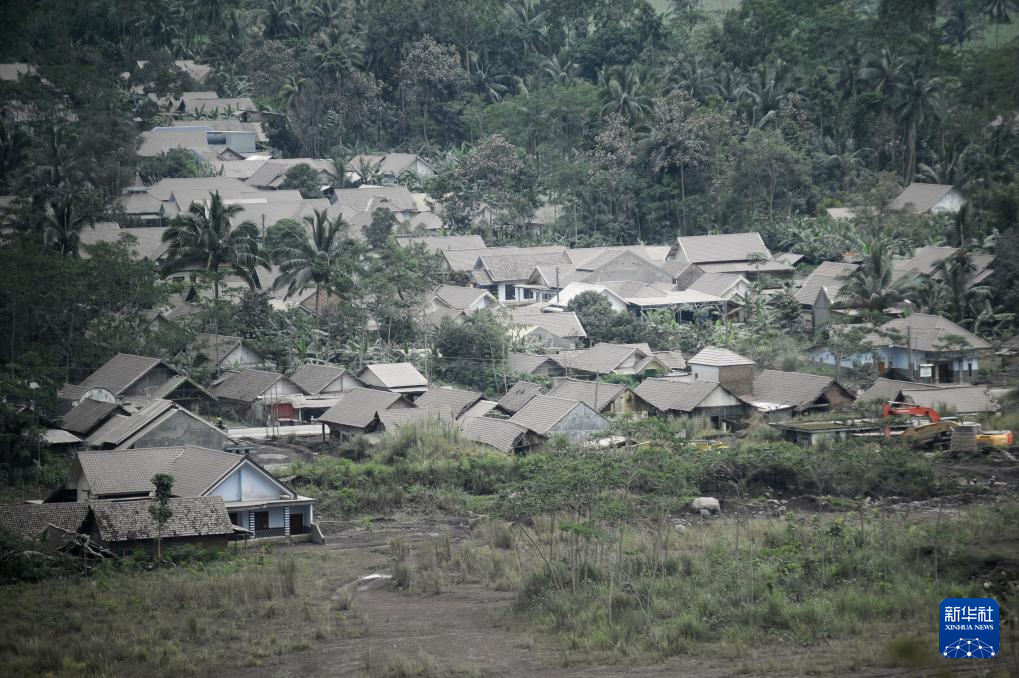 这是11月23日在印度尼西亚东爪哇省拍摄的被火山灰覆盖的村庄。