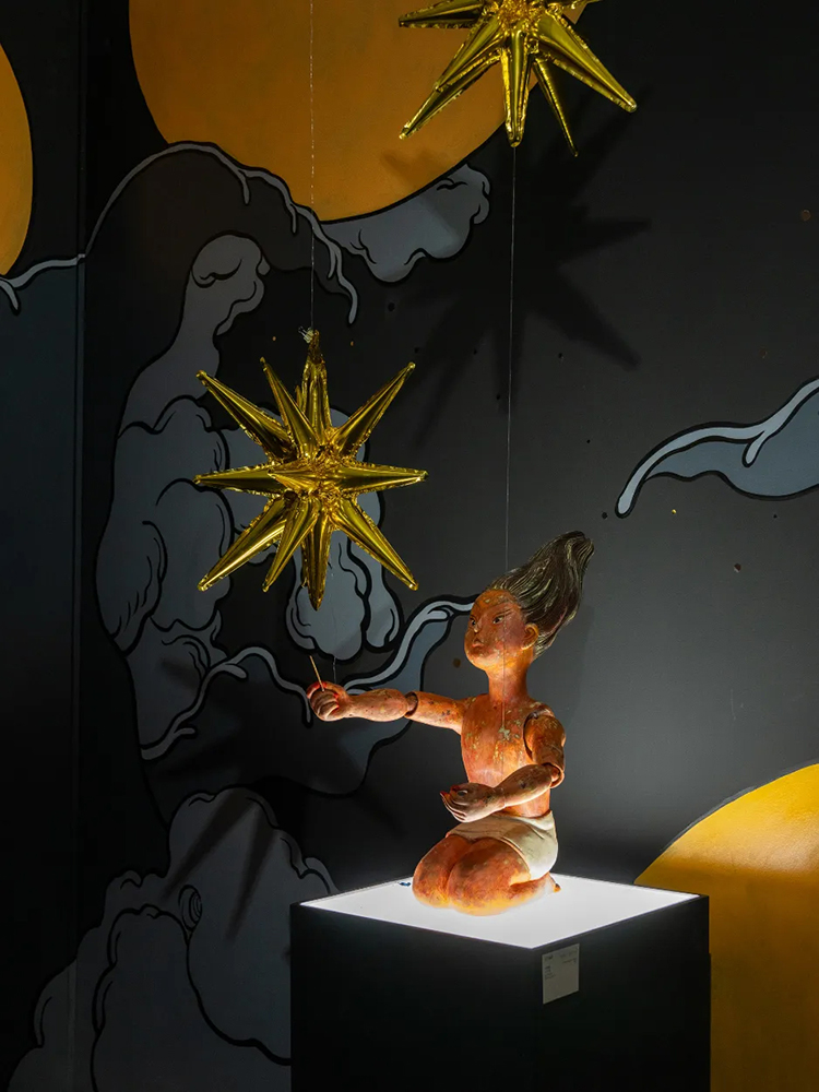 2025年9月20日, “神乎其神”文那大型个展于麓湖A4X艺术中心正式向公众开放。本次展览通过十三个主题单元,系统梳理了文那十余年来的创作脉络,从早期插画,到壁画创作的突破,再到近年来的雕塑与空间装置拓展,全面呈现了艺术家的艺术演变,引领观众踏入一个现实与想象交织的“神乎其神”之境。