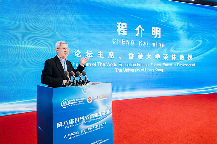 香港大学原副校长、荣休教授程介明介绍了论坛举办的背景和主题。他表示,人工智能正在重塑全球教育图景,希望与会专家学者、学校和教育组织负责人、师生代表等充分发表意见,深入探讨并共同展望AI在教育领域的应用及未来发展。