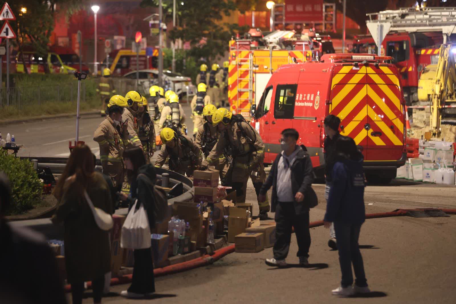 記者在現場所見,一批批居民從四面八方到來,有的用手推車裝載物資到來,最多人時一度聚集過百名市民到來捐出物資,有不少年輕人更運送一箱箱樽裝水給由火場退下來休息的消防員解渴,濃濃的溫情令人心生暖意。