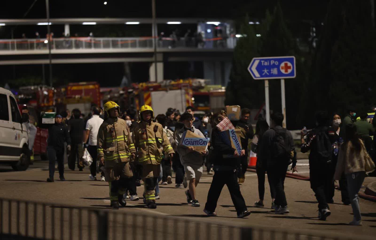 香港文匯報訊(記者 蕭景源) 深夜的大埔宏福苑火災現場一帶,冷風帶來一絲絲寒意,但卻有一股股暖流由四面八方湧來。宏福苑的災情災,牽動着無數市民的心,不少熱心街坊紛紛自發支援受災的居民,捐出樽裝水、餅乾、麵包和衣物等物資,一批一批送到大埔廣福商場平台,有義工在場清點和派發物資。
