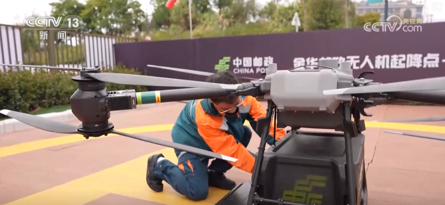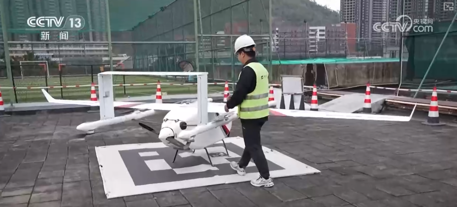 记者随快递员来到附近的无人机航站,看到刘先生寄出的合同与其他快件一起集中装运,准备起飞发往珠海。