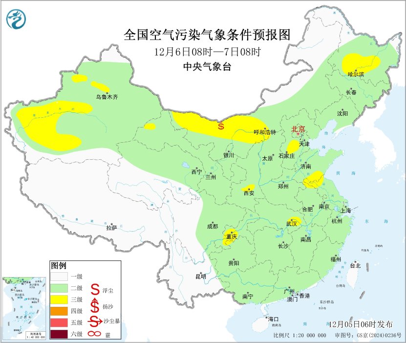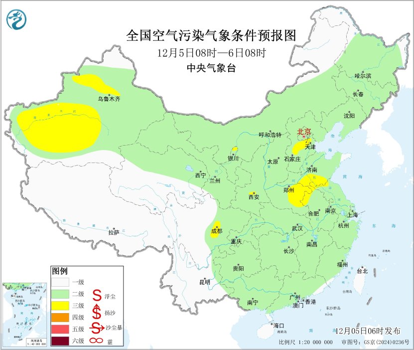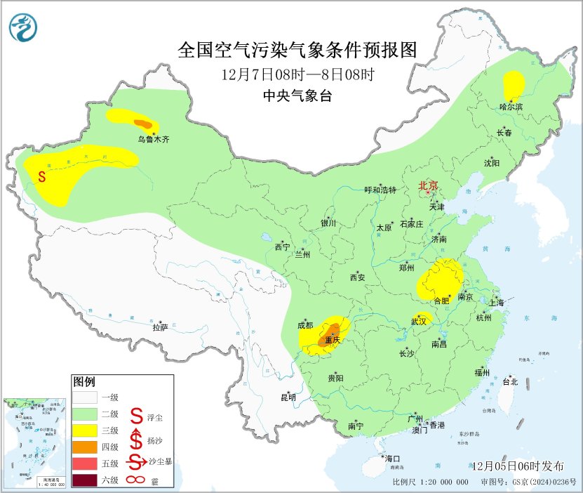 未来一周,新疆天山北坡城市群大气扩散条件较差,有轻至中度霾。此外,6日,新疆南疆盆地、内蒙古西部等地的部分地区有扬沙或浮尘天气。