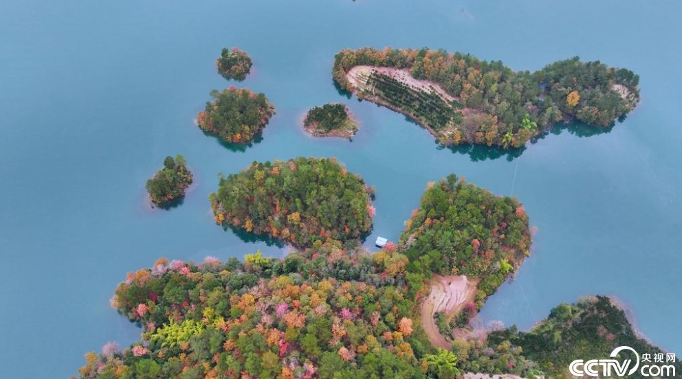 乌江重庆市酉阳土家族苗族自治县龚滩段,层林尽染,色彩斑斓的岛屿镶嵌在乌江秀美的江面上,千姿百态,美不胜收,构成一幅幅绚烂的初冬生态画卷。