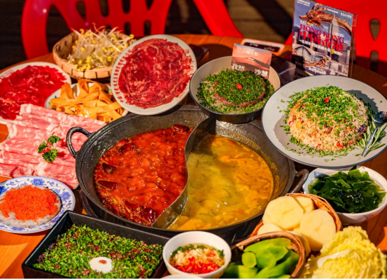 这些年朱光玉更是把“卷创新”刻进了基因:仅在2024年一年就上新近110款产品,从千丝系列、小龙虾虾滑到阿克苏红杏甜品、沙葱牛肉炒饭,不少都是行业首创;锅底也跟着时令和地域调整,从普通番茄锅到沙葱金汤锅,近20种鸳鸯锅适配不同食客的口味,就连澳门永利皇宫店,都为全球客人定制了单人小火锅。
