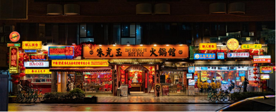 2024年1月,朱光玉品牌视觉3.0版本在上海落地。这个版本的门店将老酒楼会客厅、香港老茶馆、金鱼街、华人夜市、海鲜市场、酒楼后巷六大场景直接搬到火锅店里,俨然一座小型的中国文化博物馆。随后的9月份,朱光玉将火锅搬到了长城,打造了一场美食与文化的“双重盛宴”。