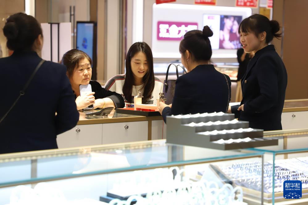 12月10日,消费者在福建省厦门市思明区一家商场选购首饰。新华社发(曾德猛 摄)