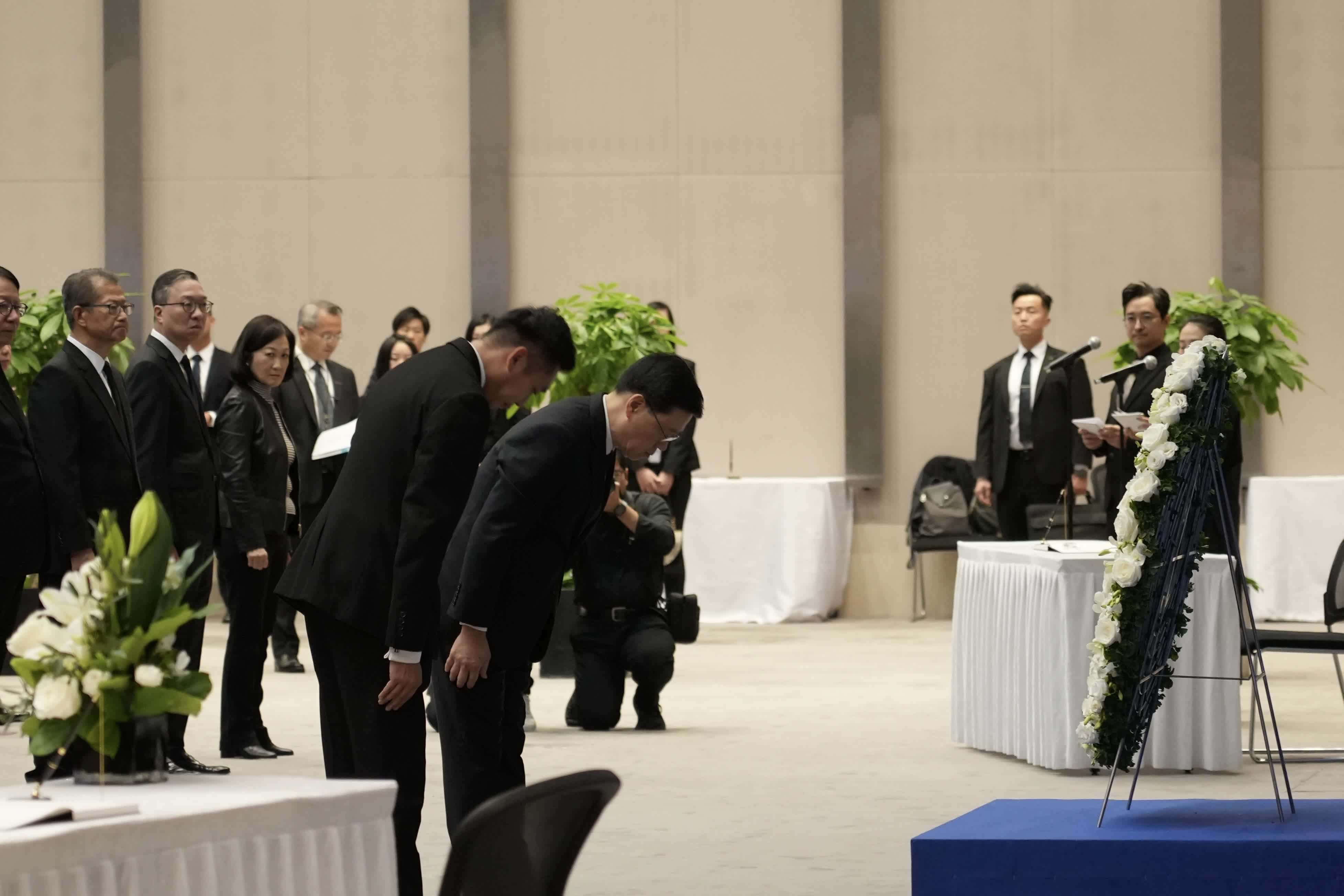 李家超向死難者致獻花圈。(大公文匯全媒體記者劉妍伶攝)