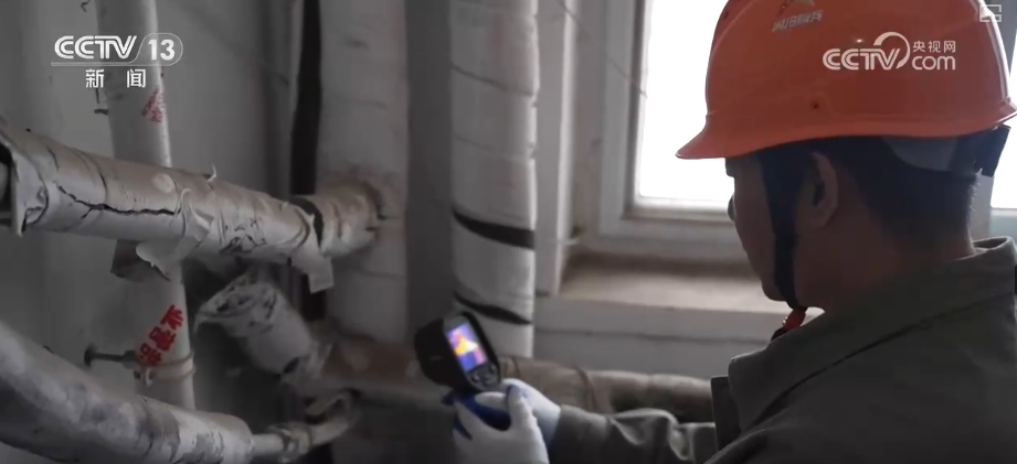 在沧州市运河区一处已有三十多年楼龄的老旧小区内,热力巡检员正手持检漏仪和测温枪,逐段检查供热管道。