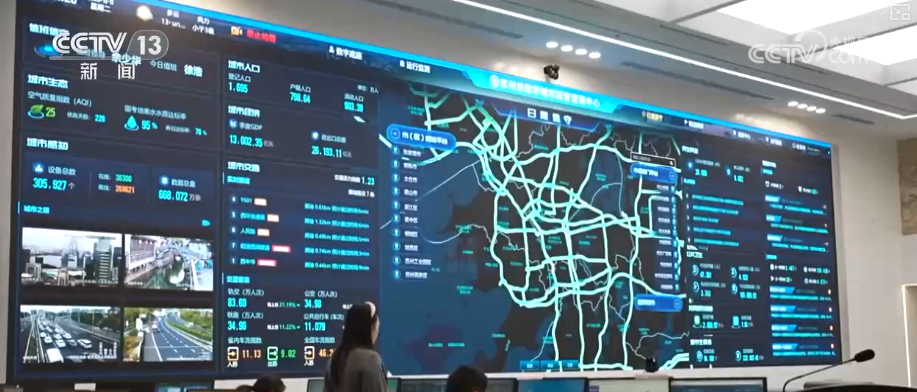在苏州市数字城市运营管理中心大屏上,除了居民的社区诉求,还能显示燃气管道、电梯运行等数据,发现问题后工作人员可以将社区设施故障信息“一键派发”给网格员。目前,平台已汇聚苏州市超1500亿条数据。其中,民政、社保等民生数据2400多万条。