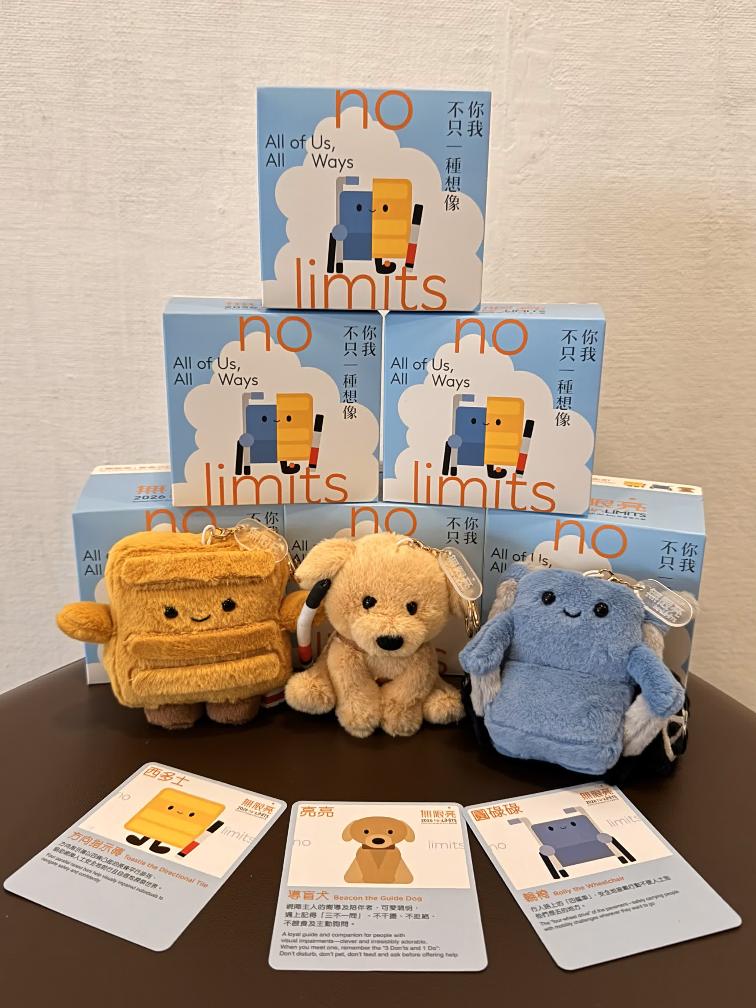 盲盒風潮也吹到本屆「無限亮」,本屆藝術節推出三款全新無障礙主題盲盒公仔——輪椅(圓碌碌)、導盲犬(亮亮)及方向指示磚(西多士)。