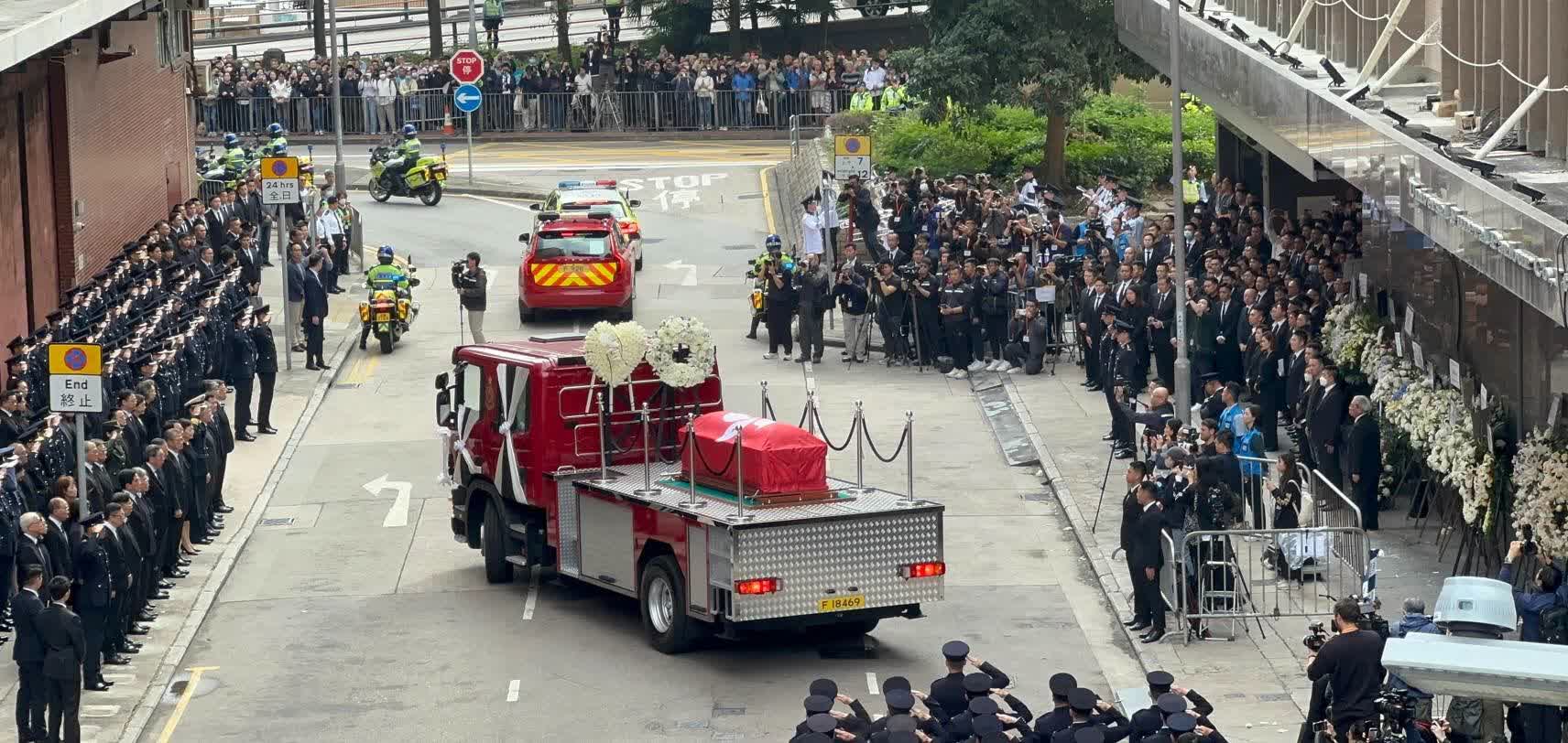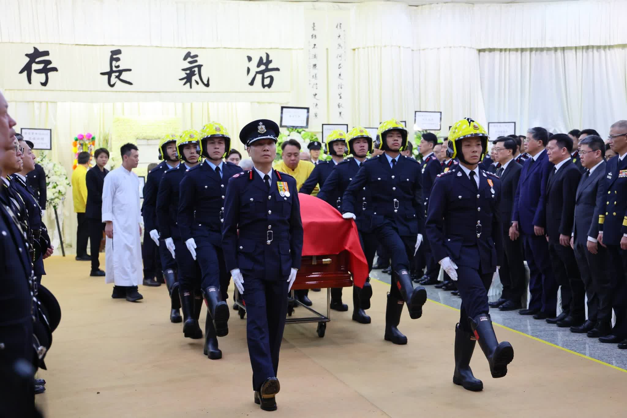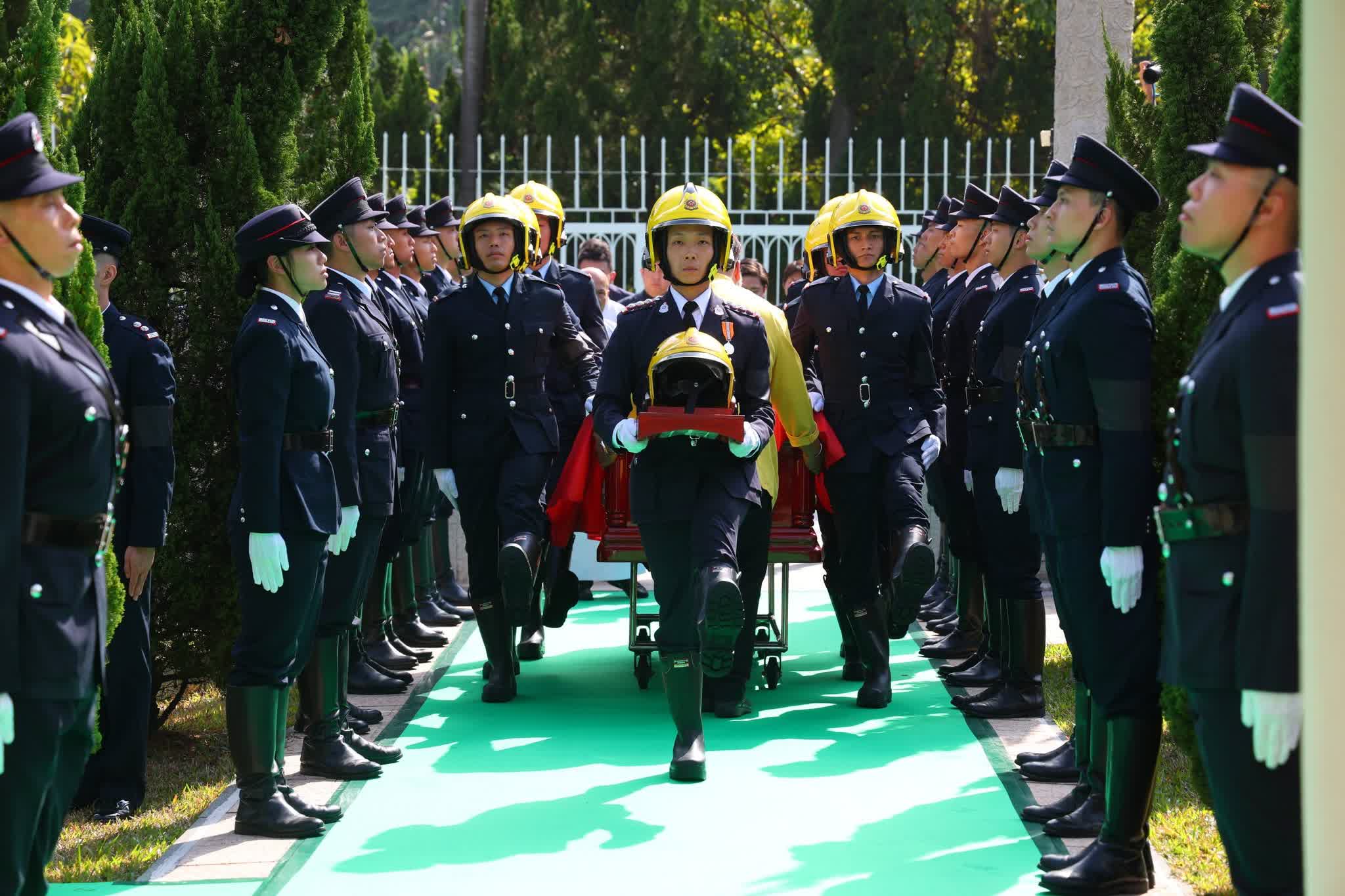 香港文匯報訊(記者 蕭景源) 消防處今早(12月19日)在紅磡世界殯儀館,為在大埔宏福苑大火中執行救援任務時英勇殉職的已故消防隊目(追授)何偉豪舉行最高榮譽喪禮,特區政府官員、社會賢達、消防處屬員,以及大批市民到場向何偉豪作最後致敬。
