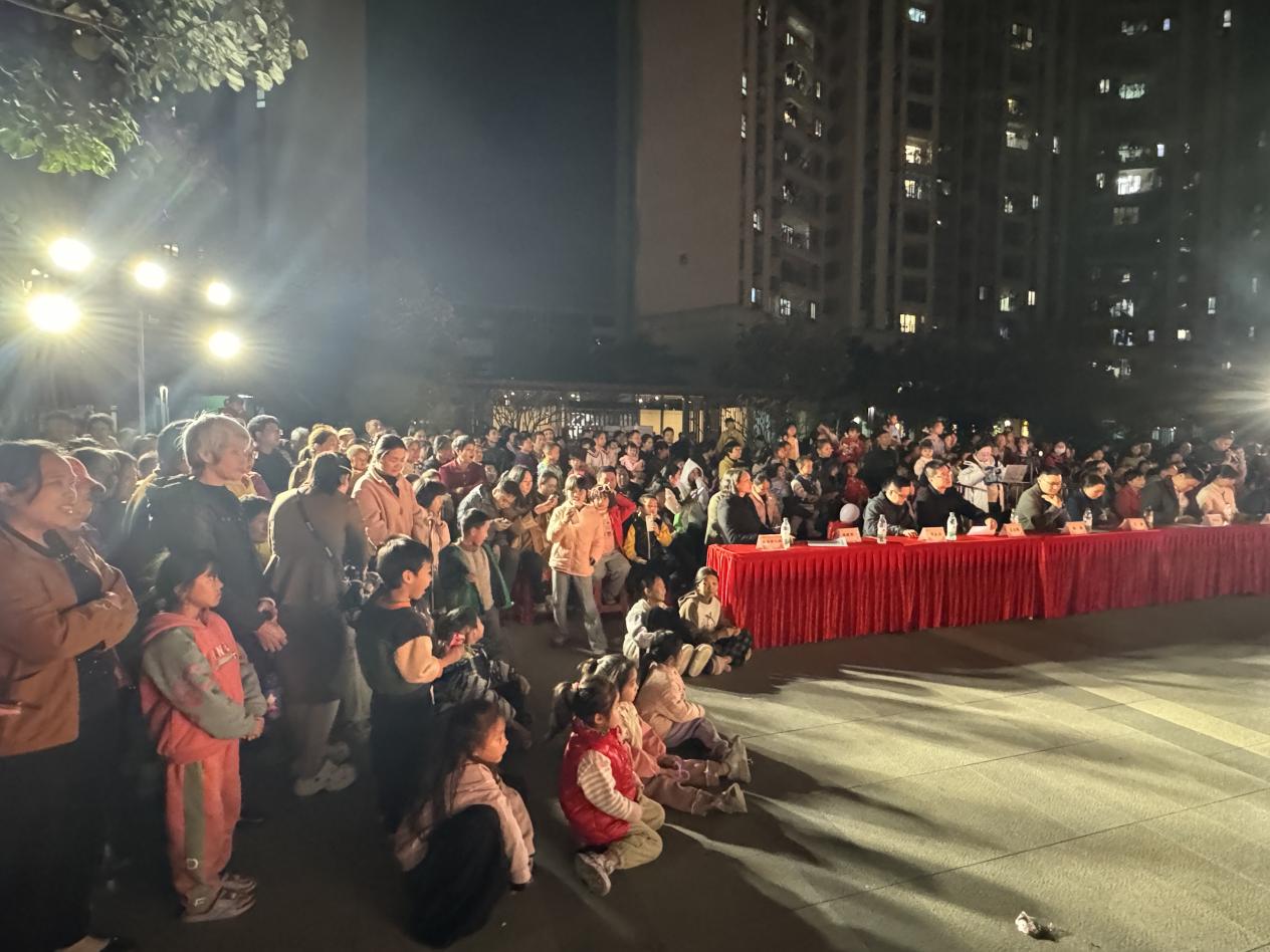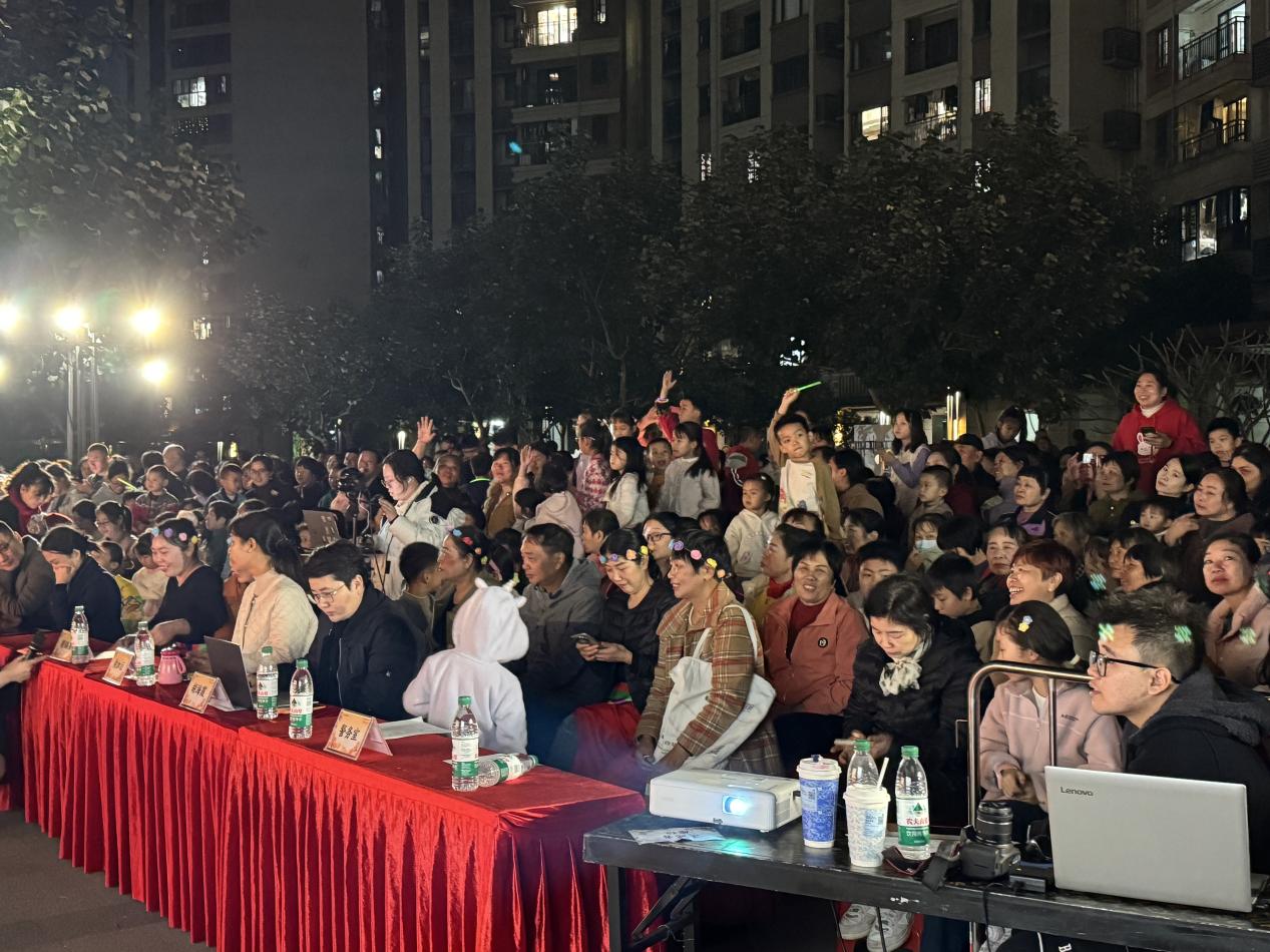 一场从白天延续到夜晚的邻里嘉年华在此上演。从上午的亲子游戏、民俗小吃体验,到晚间的业主自编自演节目、线上直播抽奖等创新环节交织,活动持续近十小时,吸引了数百户家庭参与,现场掌声与欢呼不断,逐渐将气氛推向高潮。