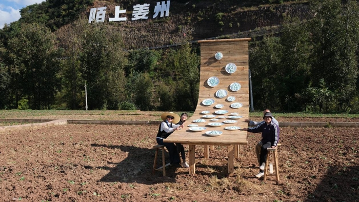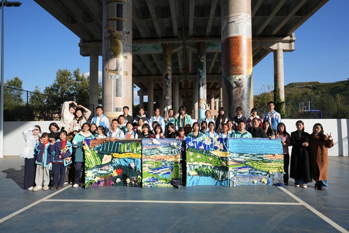 《姜州图景》作为唯一一个与当地人共创的作品,作者杨智超、李铭燃和柴鑫萌将艺术创作与公共教育活动深度联结,邀请和文中学与会东中学的师生共同参与,携手织就了一幅立体灵动的风景长卷。
