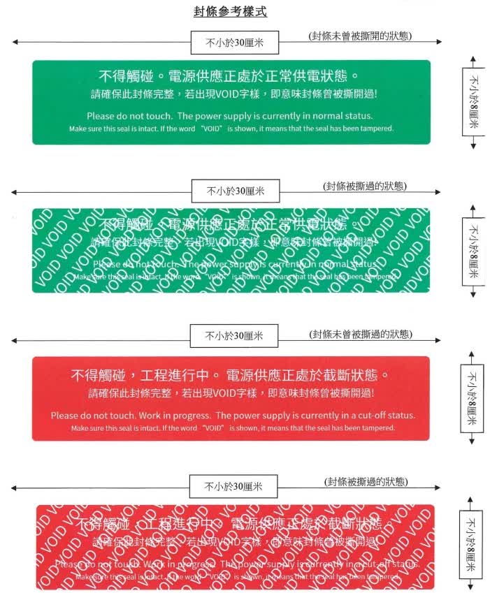 消防處通函第1/2026號規定,當消防裝置(如消防喉轆、手動火警鐘掣等)出現損壞時,承辦商必須在裝置當眼位置張貼符合標準規格的損壞告示,以便公眾容易識別,避免在緊急情況下誤用已損壞的裝置。此外,承辦商亦須在消防裝置電源開關貼上封條,以防止電源被錯誤關閉,並便利管理人員在巡查時識別電源狀態,以便及時作出相應行動。