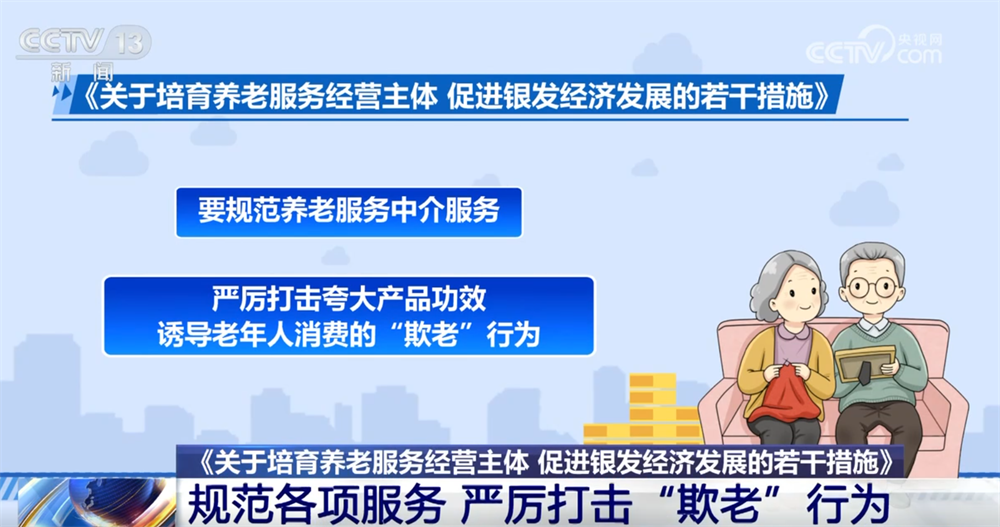 各地要加快养老机构分类改革,加快制定老年用品、养老服务等国家标准。建立银发产品、服务相关认证制度。要规范养老服务中介服务,严厉打击夸大产品功效诱导老年人消费的“欺老”行为,集中整治非法集资、旅行社不合理低价旅游等侵害老年人权益的市场乱象,依法依规对违法侵权的养老服务经营主体实施失信惩戒。
