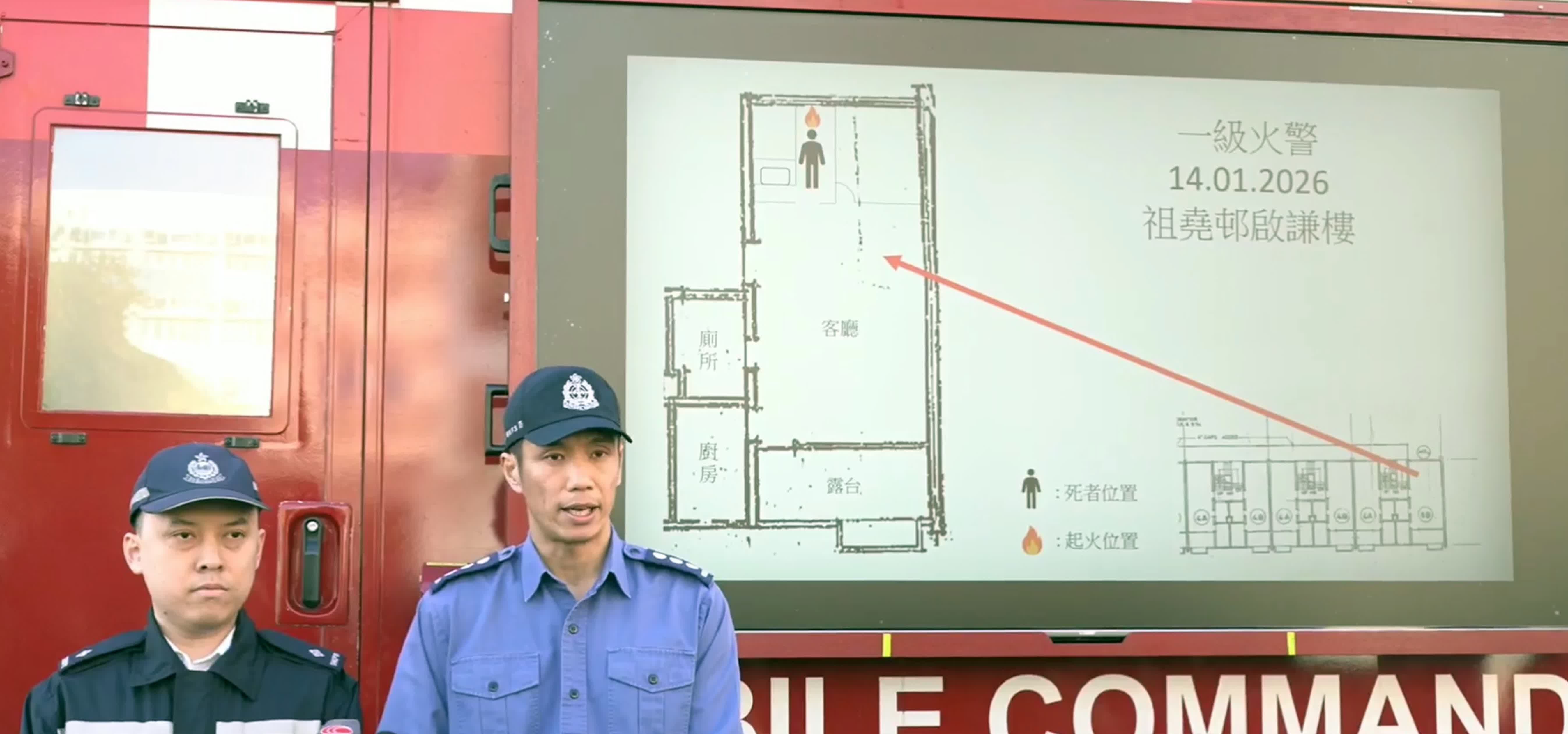 消防處助理消防區長李啟聰表示,肇事單位面積約400呎,雜物不多。發現死者的位置在一個面積約60呎的睡房內,亦是最初起火位置。當消防員到場時,仍發現部分艾草在燃燒中。由於接獲多個火警報告,因而消防特別抽調搜索隊到場協助居民疏散,期間有約50名大廈居民自行落樓到安全位置暫避,大廈的消防系統及設備均運作正常。