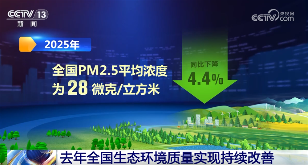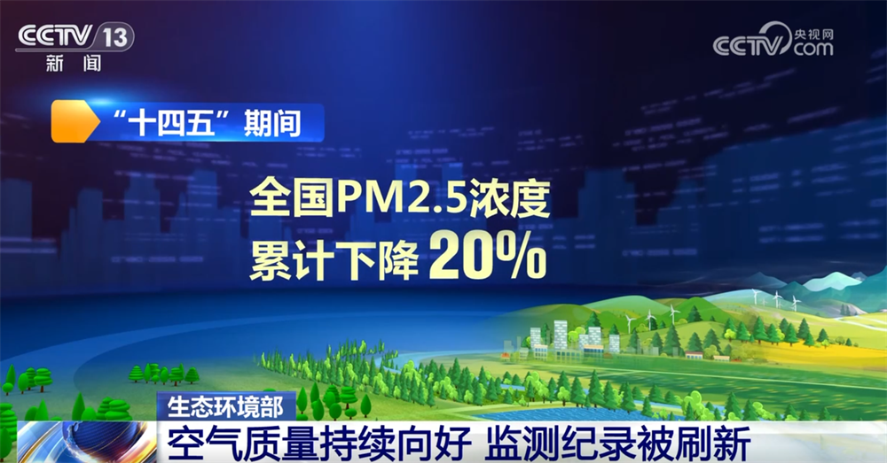 全国PM2.5平均浓度为28微克/立方米,同比下降4.4%;优良天数比例达到89.3%,同比上升1.9个百分点。“十四五”期间,全国PM2.5浓度累计下降20%,优良天数比例创有监测纪录以来最好水平,重污染天数减少25%。