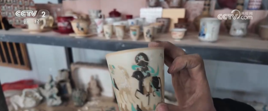 王彦军介绍,这款主人杯以敦煌壁画九色鹿为主,通过对壁画元素的提取,经过1240度入高温烧制成瓷,最后产品成型。