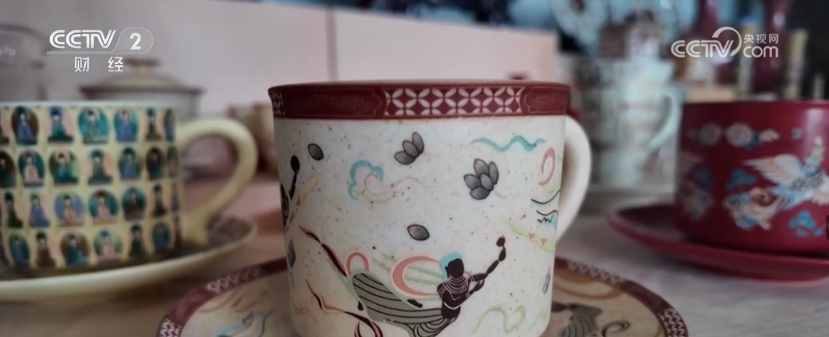 王彦军表示,他结合所学本专业把敦煌元素转换成文创产品,嫁接于陶瓷之上,研发了一系列敦煌元素的陶瓷产品,比如有咖啡杯、茶具,以及日常用瓷以及艺术用瓷。