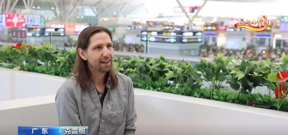 来自加拿大的大卫,在广东清远经营着一家加拿大餐厅,他用Vlog向世界分享中国生活。他称:“我在广州生活了20多年,对春运太熟悉了。从绿皮火车的时代到现在的高铁,高铁的发展让我非常震撼。很方便,现在(火车上)可以点菜,很干净,有充电口,这些小桌子(上)可以吃东西,有清洁袋可以扔垃圾,然后不用到垃圾桶那边扔垃圾,什么都很方便。”