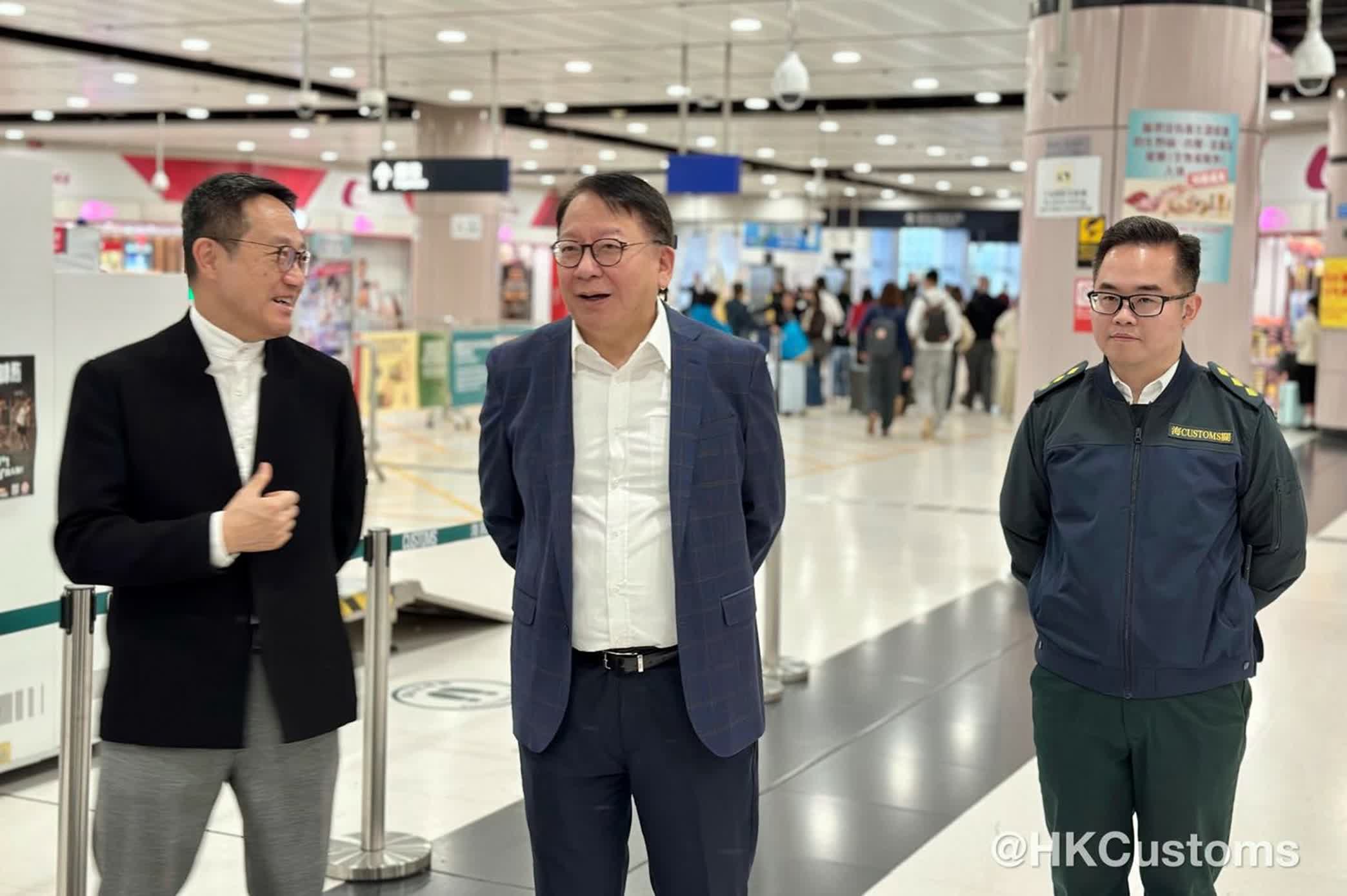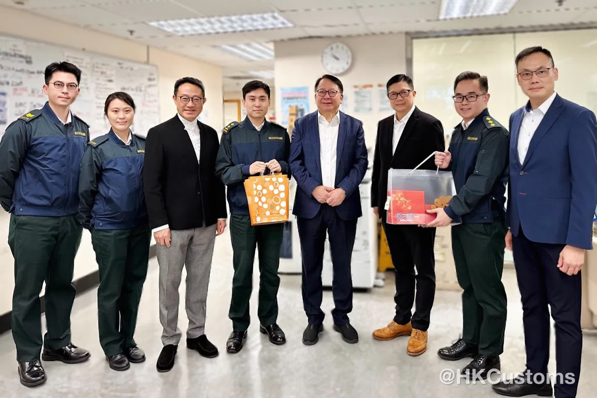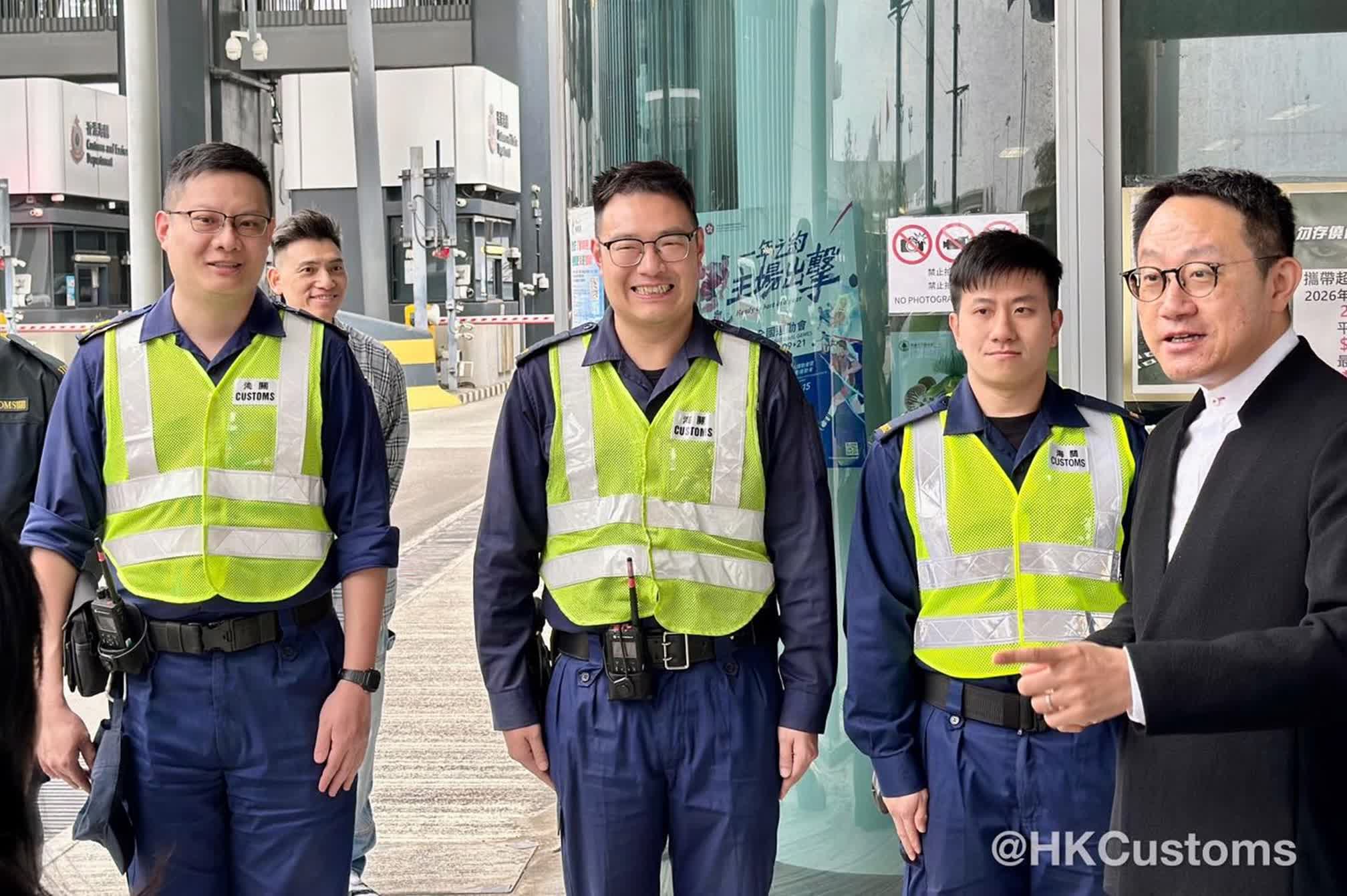 其中在落馬洲支線管制站,昨日(17日)年初一,關長陪同政務司司長陳國基和保安局局長鄧炳強一起探望前線人員,向堅守崗位的同事表達感謝與支持。