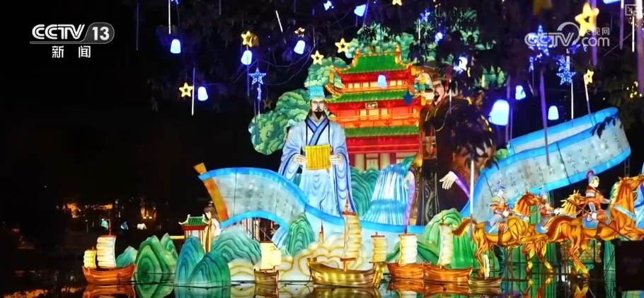 成都武侯祠的三国主题创意集市,汇聚巴蜀文化特色。“策马三国,遇见成都”,武侯祠成都大庙会点亮了“灯映三国福满蓉城”的盛景。“君臣之交”“三国名驹”“锦囊妙计”等灯组,或气势恢宏,或栩栩如生,或萌趣可爱,让传统文化潮趣出圈。“以艺入集” 特色展演引客来