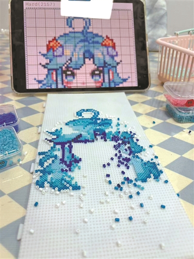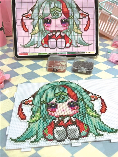 这份由拼豆缔结的连接,还能转化为更具体的情感表达。雨晨身边就有朋友,将另一位好友的卡通形象精心制作成拼豆,作为生日礼物送出。在雨晨看来,这份需要耗费数小时亲手完成的心意,其独特性与温度,是现成的商品难以替代的。